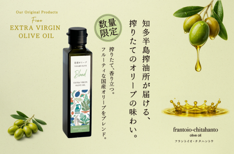 この「岩滑(やなべ)オリーブ」オイルは、frantoio-chitahantoで搾ったオリーブの繊細さに
