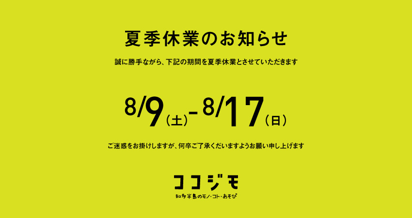 誠に勝手ながら、下記の期間を夏季休業とさせていただきます。