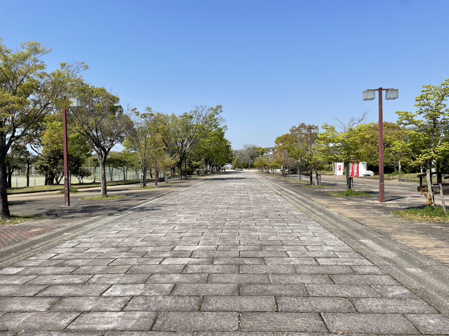 多目的グラウンドの隣を歩いて行くと、つどいの広場が見えてきます。