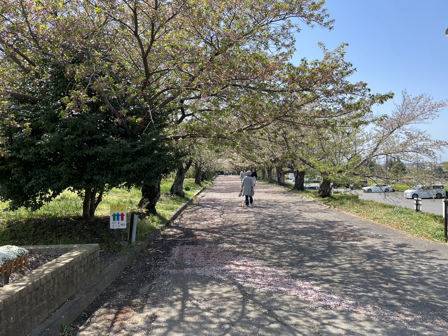 先ほどの桜並木ですが、犬の散歩をしている人もいれば、