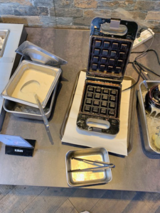 ワッフルを自分て焼くスペースもあるので、熱々焼き立てのワッフルが食べられます。