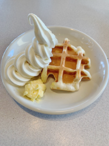 サラダバーでソフトクリームも食べ放題なので、ワッフルの上に乗せてオリジナルのスイーツが楽しめちゃいます。