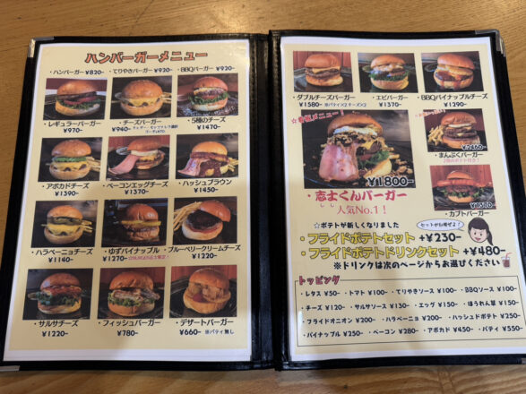 メニューを開いてみると、おいしそうなハンバーガーがずらり。
