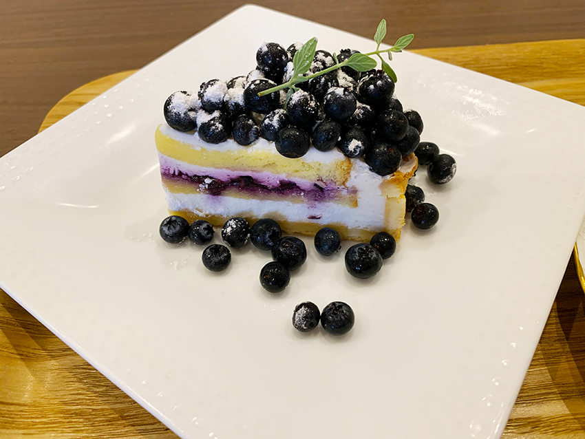 ブルーベリーがたっぷりでケーキから溢れ出しています。