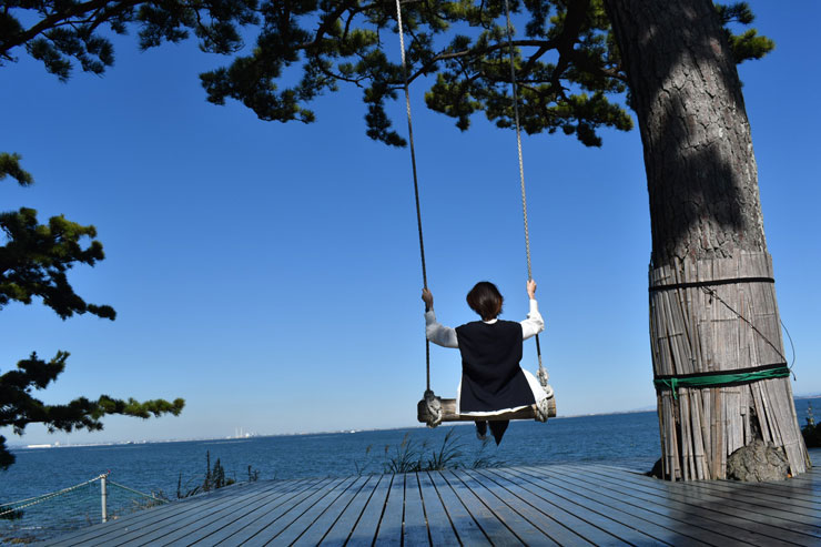 東港に程近い場所にあるサンライズビーチの「キッズアドベンチャー」から高台へと階段を登ると大きなブランコが見えます!少し、ビビりながらもブランコに乗ると、海に投げたされるような感覚!そして、視界全部海!とっても気持ちいいブランコでした。ビビッてしまって優しくこいで楽しみましたが、私の後ろの方たちは、後ろから数人に押されながらブンブンブランコをこいでいました(笑)ちゃんと無事生還をしていましたよ。一応これは「恋人ブランコ」というそうです。恋人・・・。そして浜辺には、え?「どこで〇ドア」…?発見!何度も開けて閉めて通って…したのですが、ちょっと調子が悪かったみたいでどこにもいけませんでした。残念。島内は四方が海なので、どこを歩いてもきれいです!途中、鷹?鳶?も飛んでいましたよ。