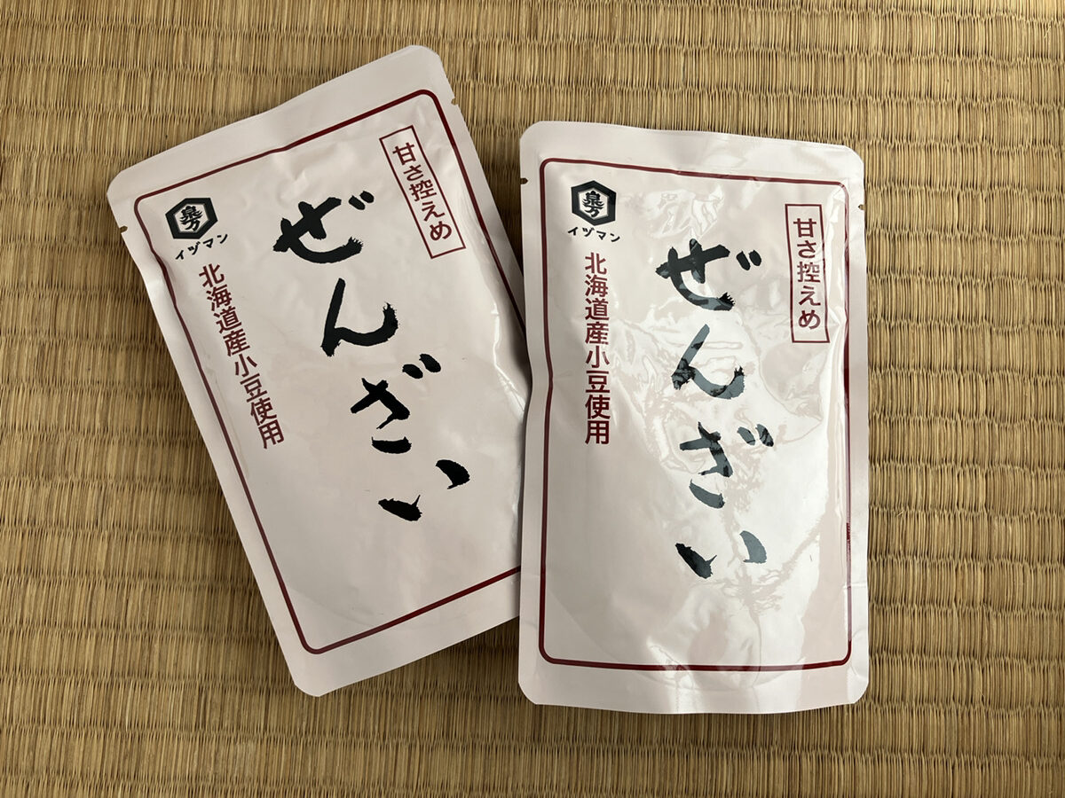 「まちの駅「味の蔵たけとよ」に行けば、町内の蔵元の商品が買えるよ~」と聞き、早速買いに行ってみました。施設内の味噌・たまりコーナーをウロウロ…。ありました!「ぜんざい」と手書きで書かれたレトルト商品を発見!パッケージもレトロで老舗感の美味しさを想像すると期待が高まりますね!