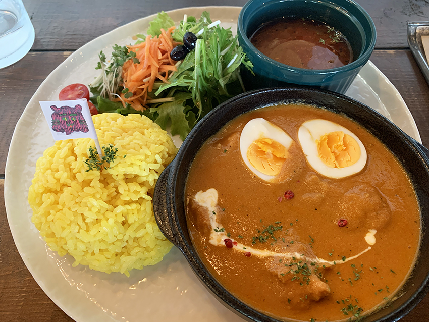 カレーの丸いお皿にゆで卵と生クリーム(?)で笑顔を描いてくれます。