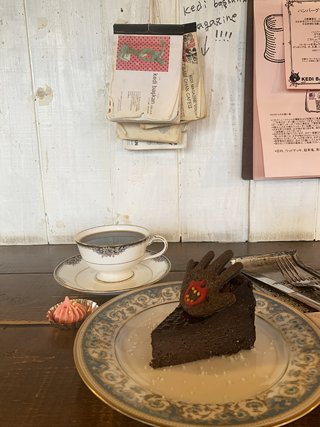 コーヒーの他は、いつも気になっていたケーキを注文。入口すぐのケースにケーキ類があるのですが、ケーキも個性的でいつか食べたい!と狙っていました。