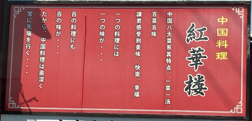 こちらの紅華楼さんも「中国料理」と書かれています。