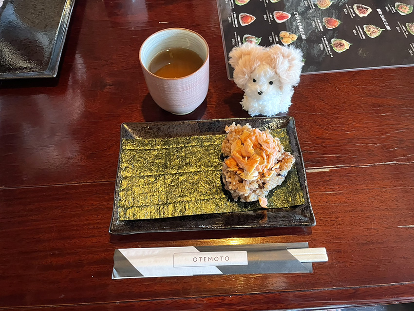 おにぎりの具に迷いに迷い、結局王道のシャケを注文しました🐟