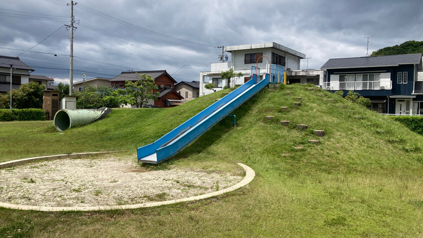 園内に入るとまず目を引くのが、築山に設置された大きなローラー滑り台です。小さな丘のような築山の上に登って滑るタイプで、適度なスリルと滑り心地が子どもたちに大人気。自然の地形を活かした設計で、元気いっぱいに遊び回る子どもたちの姿が印象的です。