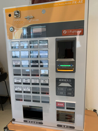 店員さんの明るい笑顔にうながされて食券を購入。入り口にもメニュー看板がありましたが、券売機を見るとご飯や追加トッピングもあります。