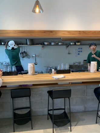 カウンター7席とテーブル4席、厨房がよく見えます。