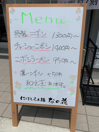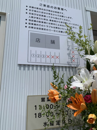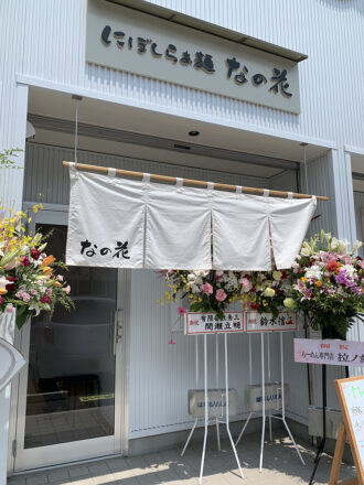 半田市の人気店「麺屋さくら」で長年働いていたとのこと、開店祝いのお花にわくわくしながら暖簾をくぐります。