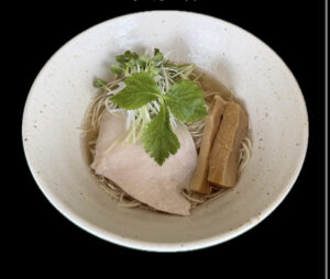 私はノーマルに「醤油中華そば」900円をさっそくいただきます!見た目の美しさは健在。チェーシューとメンマ、三つ葉、水菜などがのっています。