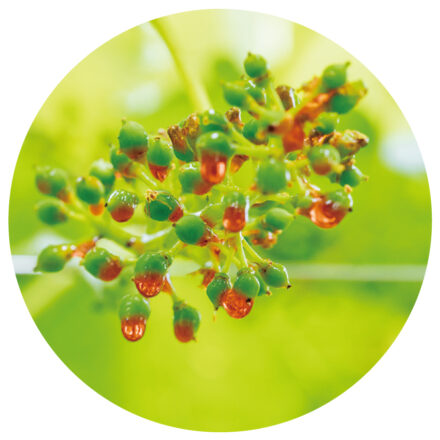 ジベレリンは植物ホルモンの一種で、成長や開花、結実などを調整します。ブドウでは、種無しの大きな果実を作るためにジベレリン処理が行われます。