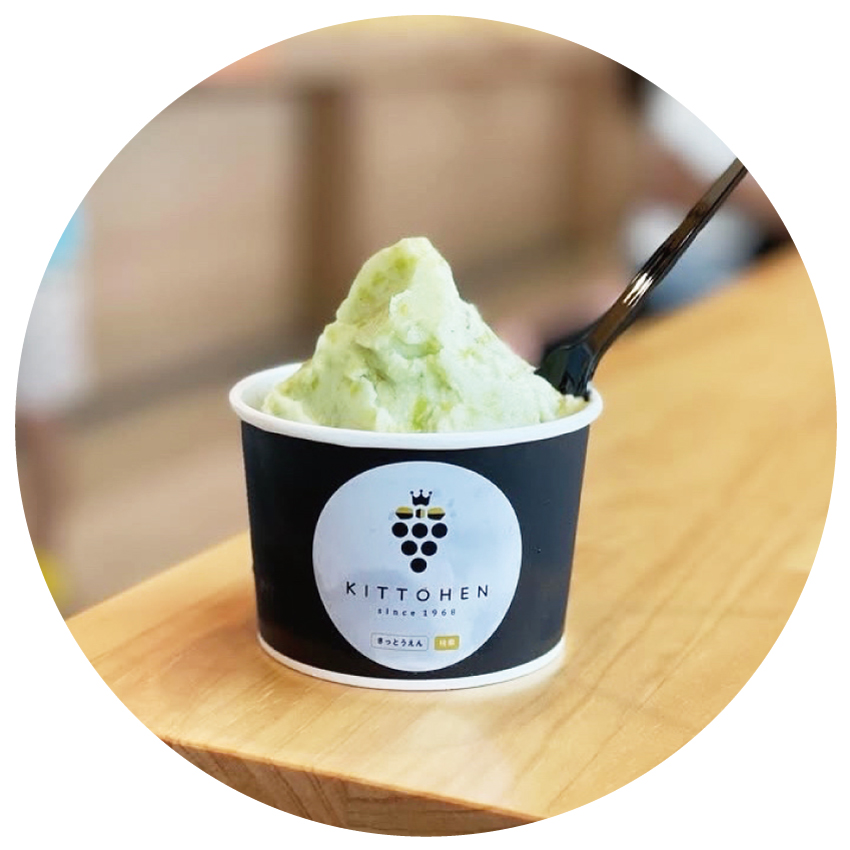 大府市の「橘萄園」は50年の経験を活かし、有機肥料で土づくりを行い、自然の味を大切に育てています。2022年には直売所をリニューアル!併設のジューススタンドではコールドプレスのブドウ100%生搾りのジュースや、濃厚な果汁のソルベが人気。どちらも自然そのままの美味しさが味わえます。思わず「こんな美味しさ初めて!」と声が出る逸品です。