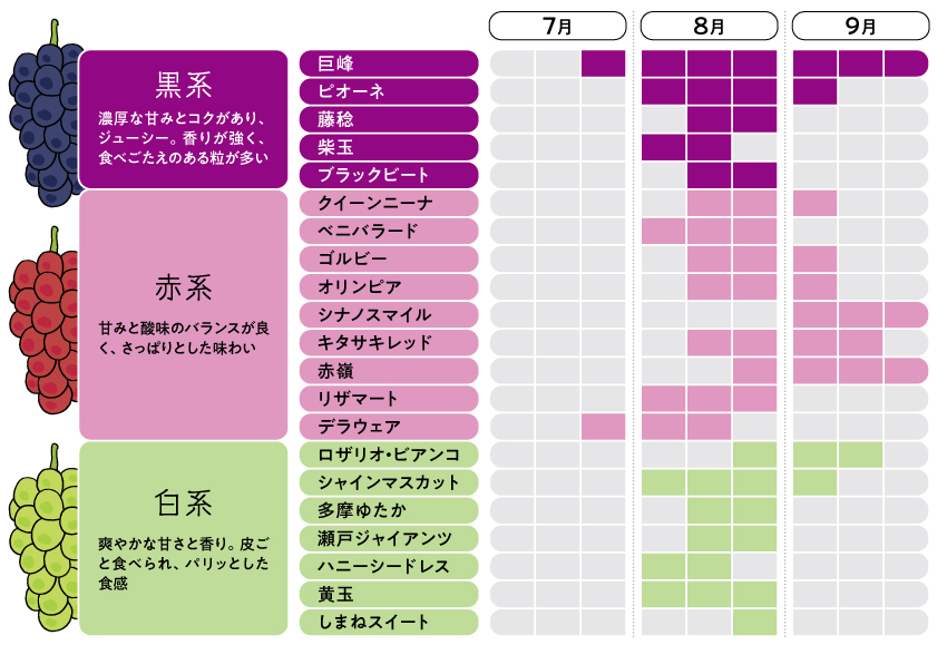 契約農家「花長」のブドウも味わえます!ブドウの産地は時期により異なります