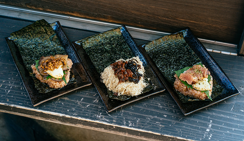 アレンジ力が際立つおむすびはこちら!ひしお麹いぶりがっこチーズ、とろろだし昆布、炙りたらこカマンベール