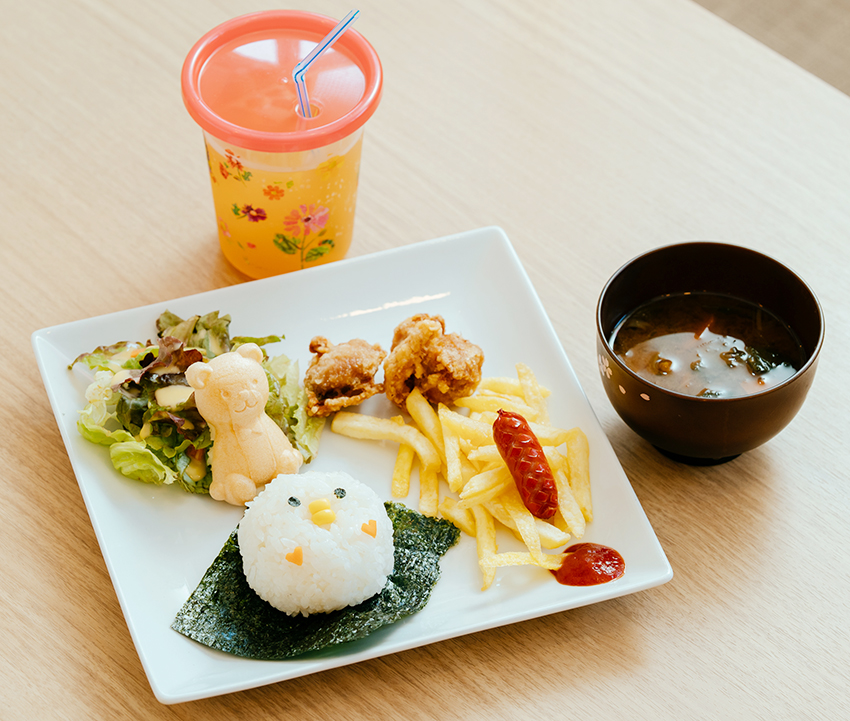 食べるのが楽しくなる!「お子様プレート」はぴよちゃんおにぎり・鳥の唐揚げ・ウインナー・ポテト・サラダ・お味噌汁・ドリンク付きの豪華セット