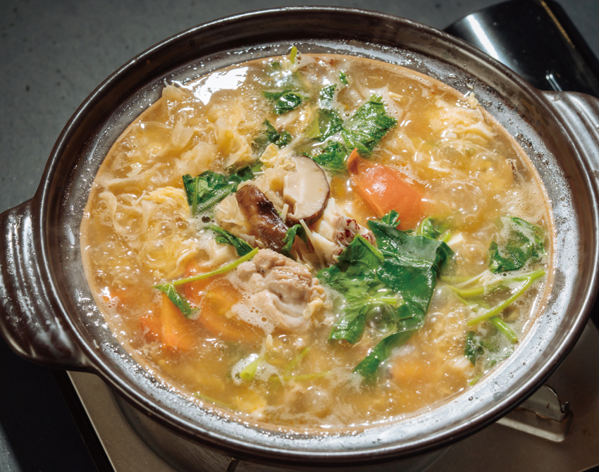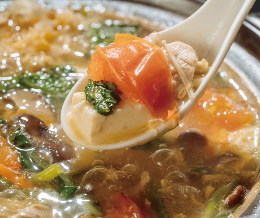 和風だしを加えることで、やさしい酸味と旨みが絶妙に重なる一鍋。お酢の成分で体もぽかぽかに温まり、寒い季節にぴったり。しっかり味が染み込んだ具材とスープは、あと引くおいしさが魅力です。