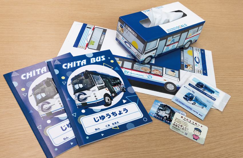 2025年にバスのカラーリングを一新し、紙石けんやウェットティッシュなどのノベルティグッズを新たに作成。ティッシュボックスのクラフトや自由帳は子どもたちに人気。