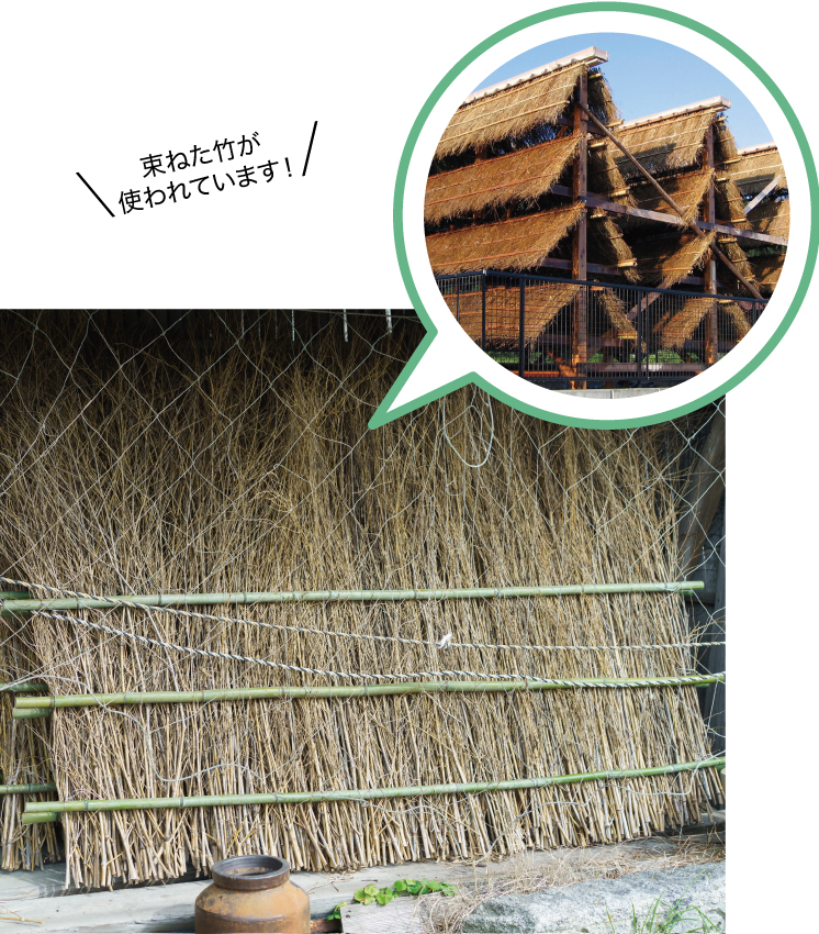 竹の枝を束ねて作る枝条。「食と健康の館」の製塩施設「流下式枝条架塩田」で使われ、竹林の恵みが塩づくりにも生かされています