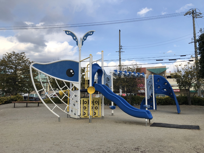 リソラ大府ショッピングテラスの向かいに小さな公園があります。かわいいクジラの形の遊具があって、小さなお子さんがよく遊んでます。