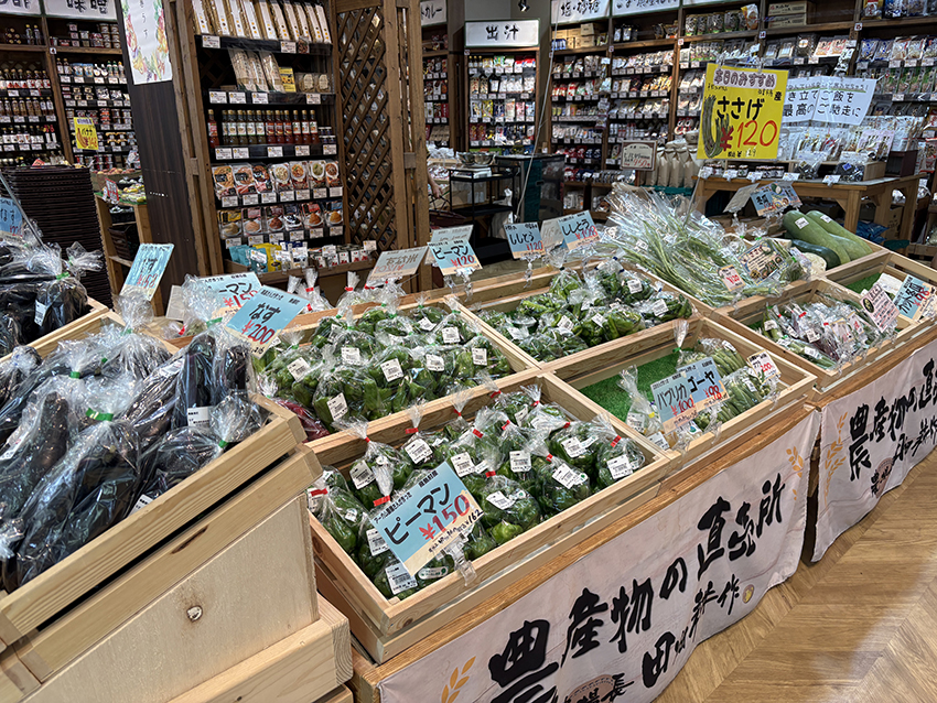 地元の農家さんの旬の安心、安全な農産物がズラリ。