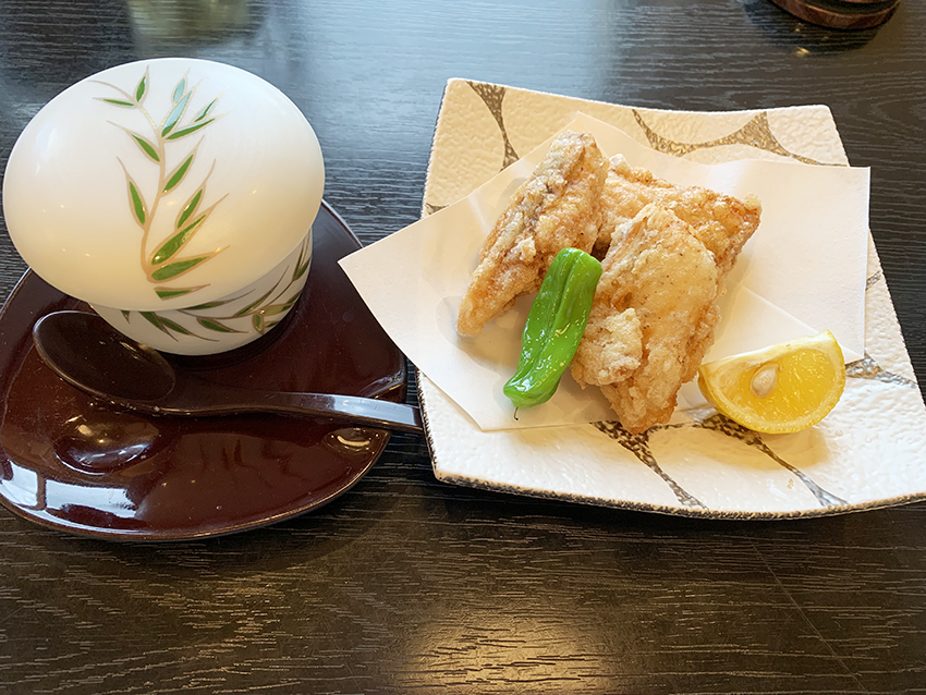 茶碗蒸し、ふぐの唐揚げ
