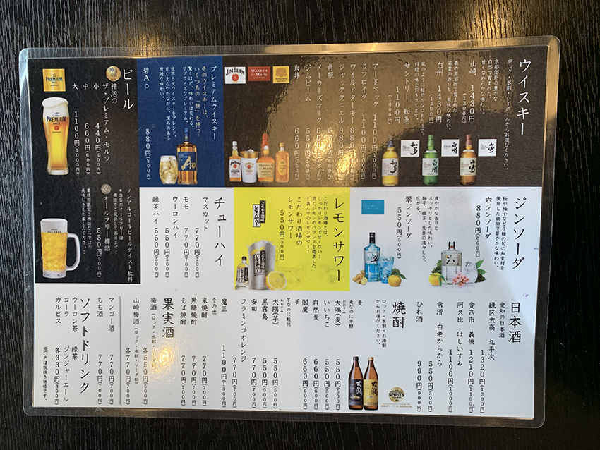 はじめに飲み物を決め、小鉢などの料理を味わいます。