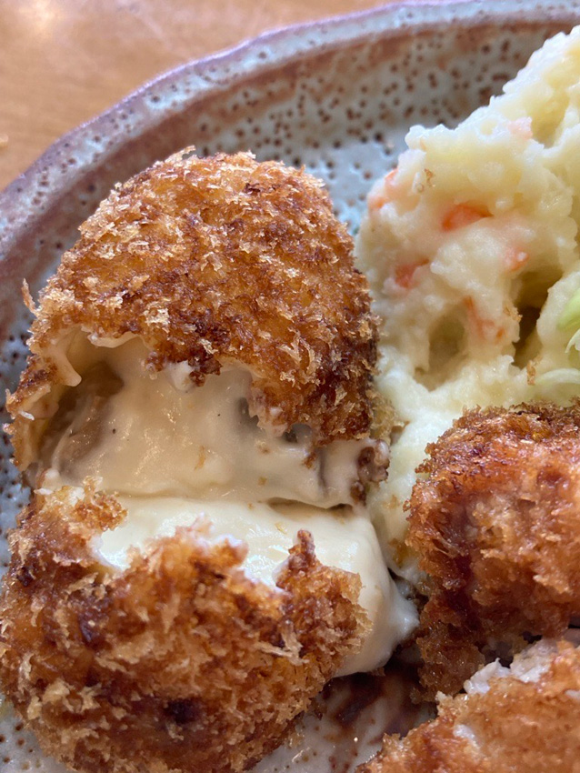 ではお楽しみのクリームコロッケ。アツアツはちょっと危険なので(笑)私は後半戦でいただきます。
