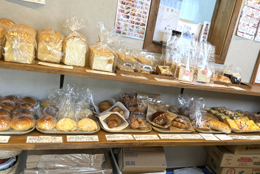 つくし堂さんは、ただのパン屋さんではありません。和菓子職人が手作りするパン屋さんで、ひとつひとつ丁寧に作られたパンは、どれもやさしい味わい。素材や製法へのこだわりが感じられる、地元の方にも愛されているお店です。