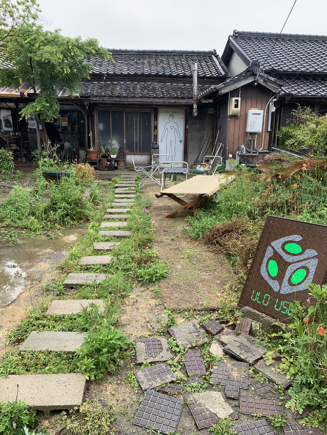 おしゃれな看板、ここかな。昔ながらの常滑の家、木々に囲まれて趣のある雰囲気。