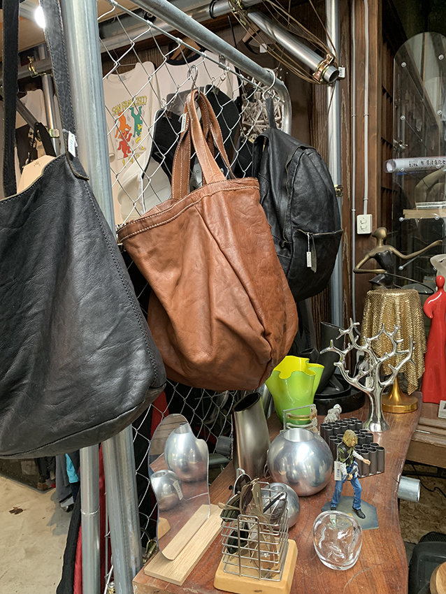 楽しそうな話し声の中、入り口に並ぶ革のカバンが目に入ります。