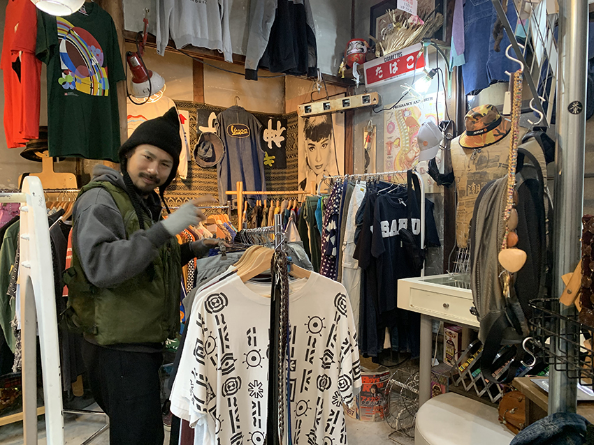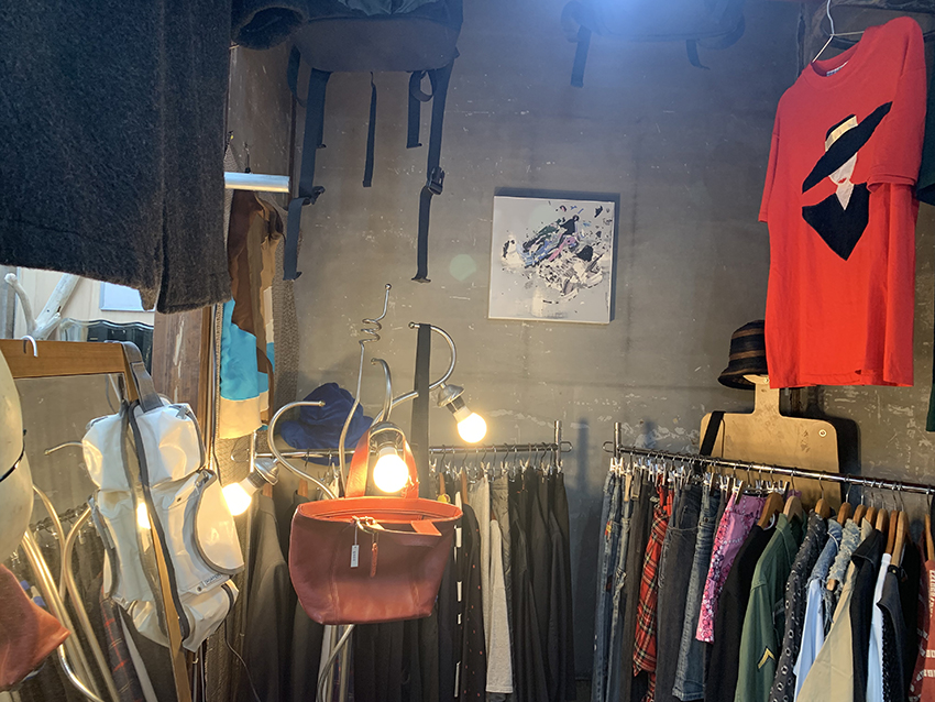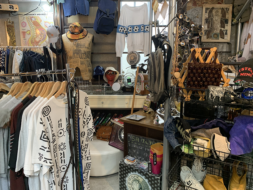 店内に所狭しと並ぶ古着と雑貨の数々、オーナーさんが海外で買い付けしているそうです。
