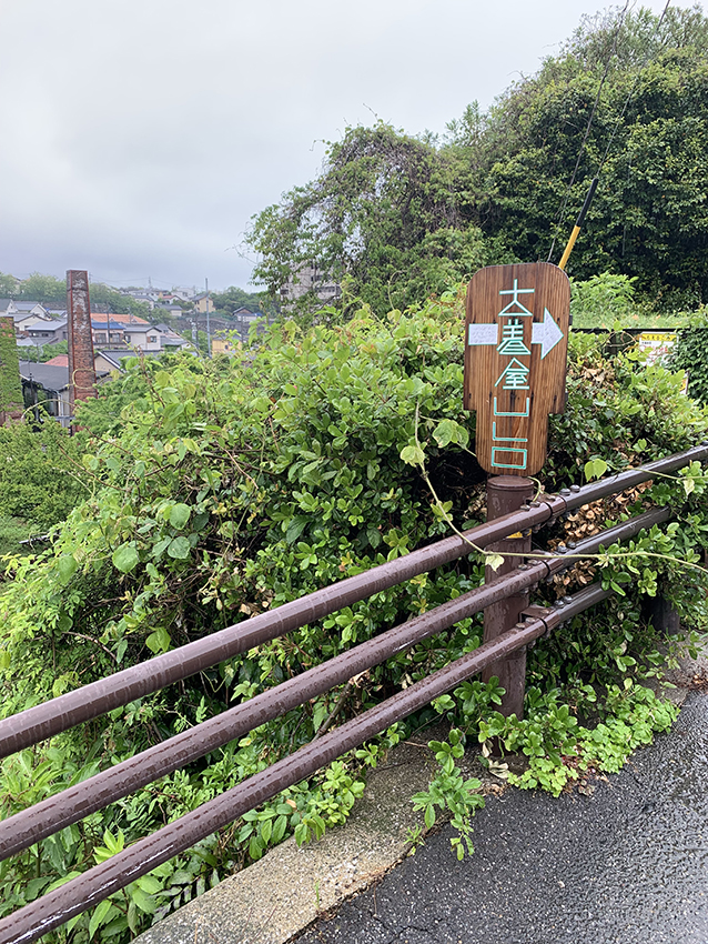 Googleマップを頼りに歩いても道が細かく、ここであっているのかな?と心配になりながら進んでいくと、、看板がありました!景色の良い高台で、焼き物の街である昔の名残の煙突が見える風景を楽しんでから、看板の示す方へ歩きます。