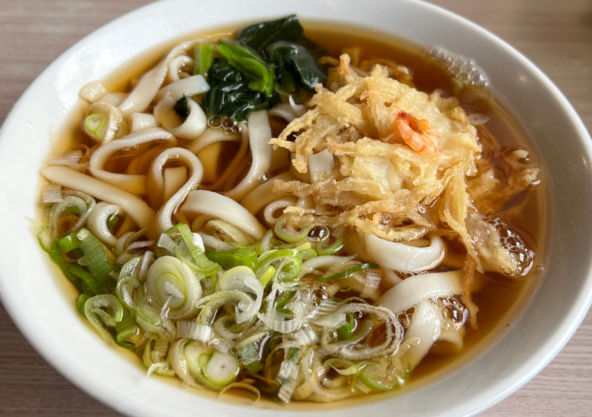 食べている途中から、ほうれん草とネギの存在感もじわじわ効いてきます。こちらのお店では、どうやら「きしめんにはこの2つ」がデフォルトのようです。青菜の爽やかさとネギの香りが、出汁と天ぷらの旨味をより引き立て、食べ進めるごとに全体のバランスが完成していく感じがしました。