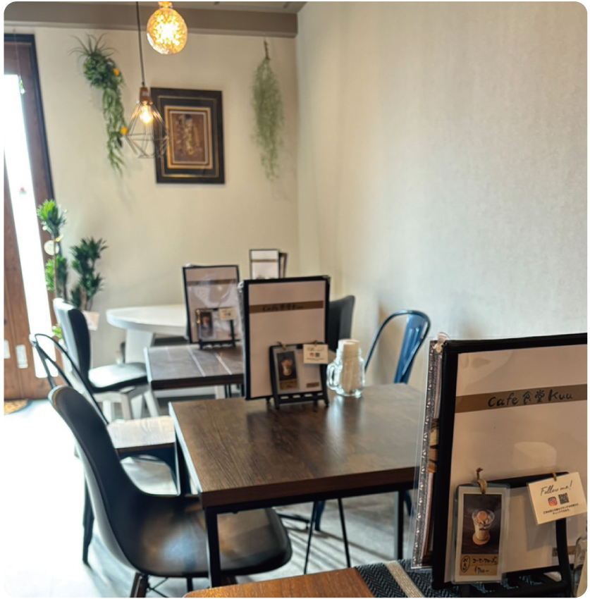 おいしいものやオシャレが大好きというオーナーが営むカフェ。人気の日替りランチはメイン2種に副菜3種、ご飯と汁ものつき。ドリンクセットやデザートセットも選べる。こだわりのサンドメニューやオリジナルスイーツで、ゆるりとした時間が過ごせるカフェタイムは14時から。