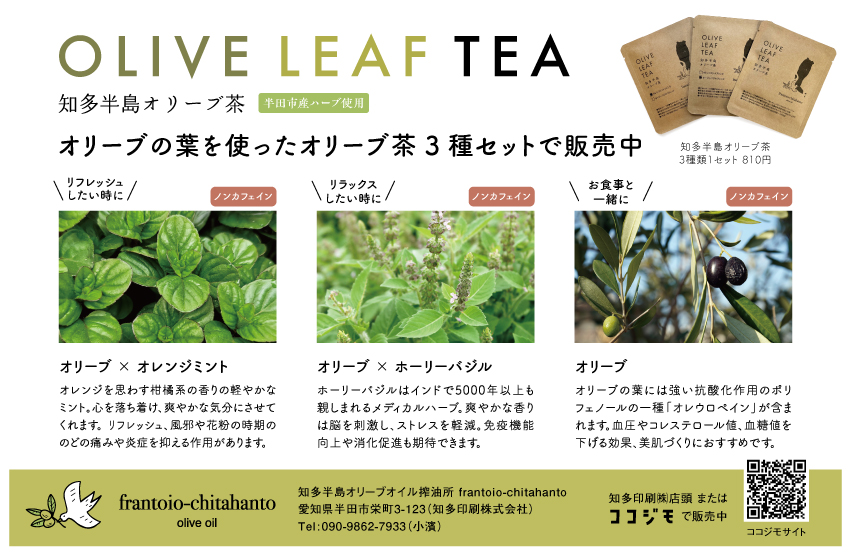 | 問い合わせ先 | 知多半島オリーブストリート事務局 知多半島オリーブ搾油所frantoio-chitahanto |