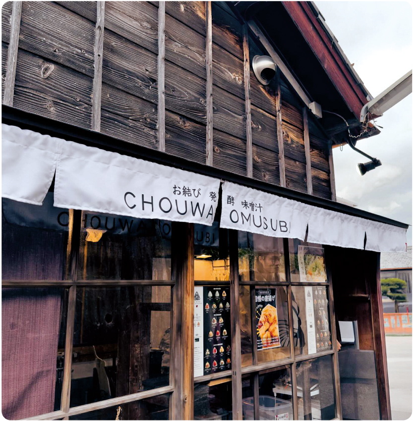 発酵食品や発酵調味料を使ったおむすびを販売。お米は特別栽培された減農薬米を使用。「白米」か、炊いた玄米を数日間寝かせた米の栄養まるごと摂取の「発酵玄米」が選べる。メニューには塩麹に一晩漬け込んだ天然紅麹鮭、甘酒や麹で甘味をつけた木ノ子麹なめ茸風などが並ぶ。