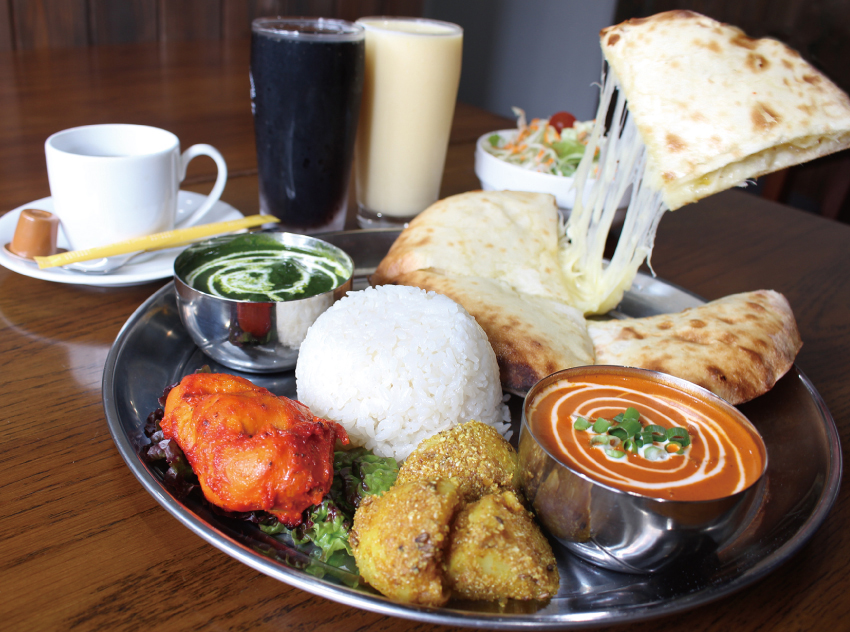 読者限定「Stepセット」が登場! カレー2種(野菜・ほうれん草チキン)、プレーンナンorチーズナン、ライス、チキンティッカ、アルジーラ(じゃがいも炒め)、サラダ、ドリンク付で1,400円。プレーンナンとライスはおかわり自由!