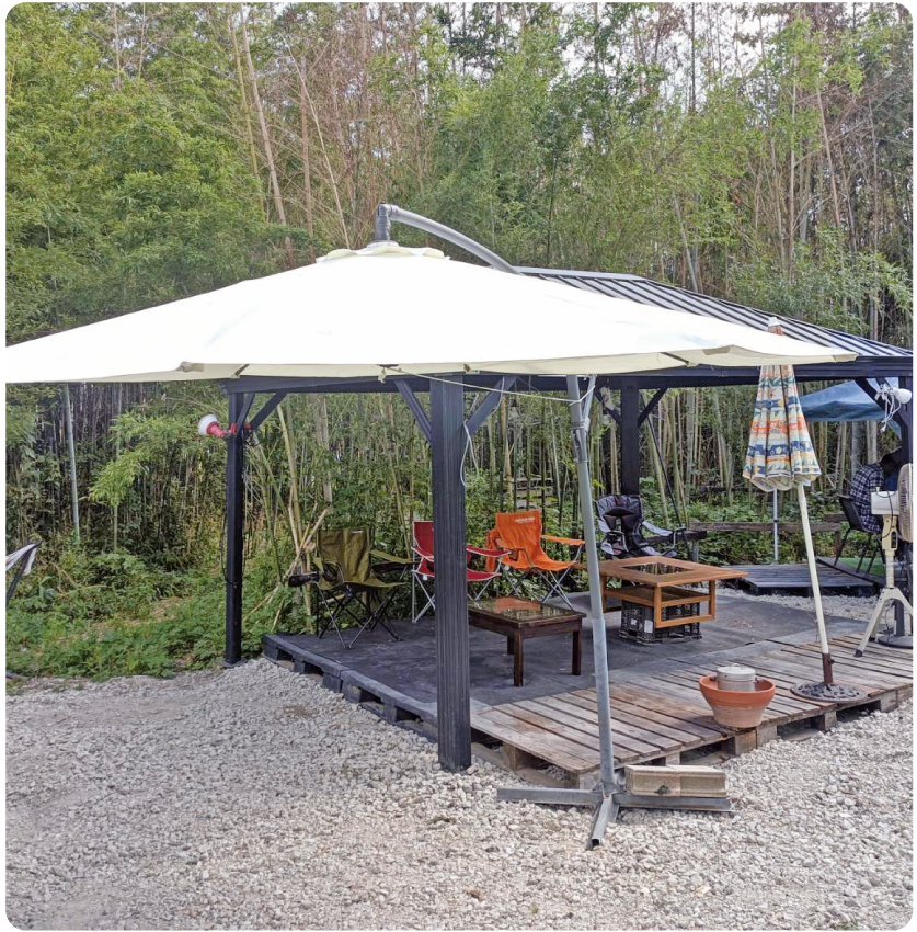 自然いっぱいのBBQ施設が大府東海インター近くにオープン(全コース要予約)。豚・鶏・牛の基本BBQコースをはじめ、秋は岐阜の松茸会席有名店「よしかわ」から直接仕入れる松茸、冬は蟹や牡蠣などが味わえる。ナイトBBQ、焚き火・キャンプファイヤーも可。15名以上の予約で無料送迎あり。