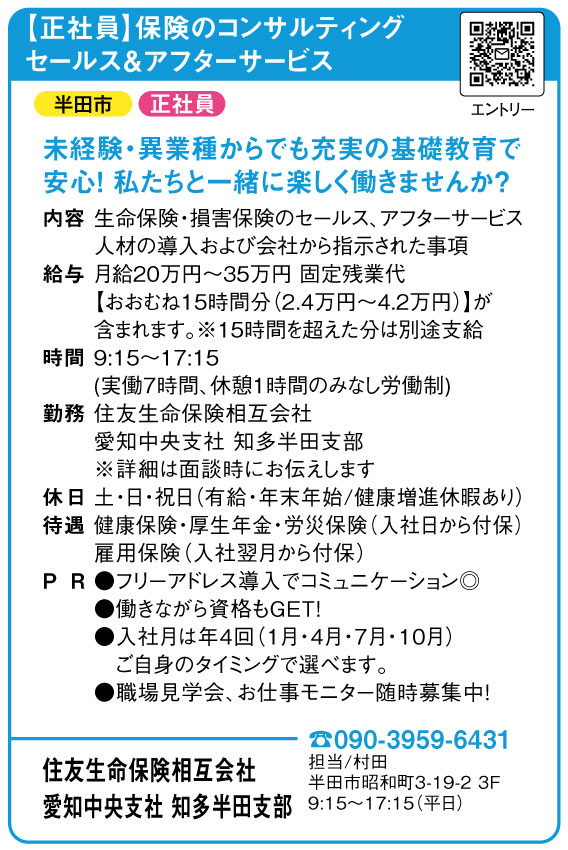 [求人]住友生命保険相互会社<br>愛知中央支社 知多半田支部