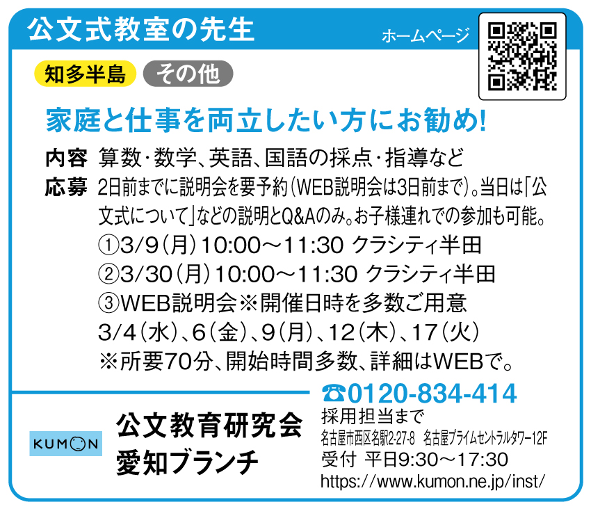 [求人]公文教育研究会 愛知ブランチ