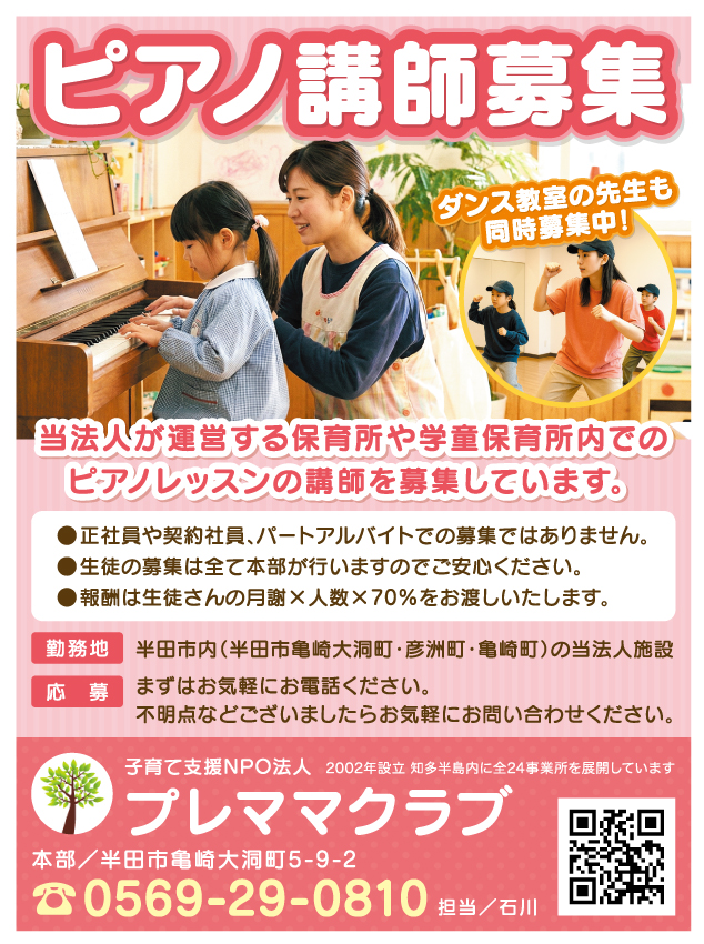 プレママクラブ ピアノ講師募集