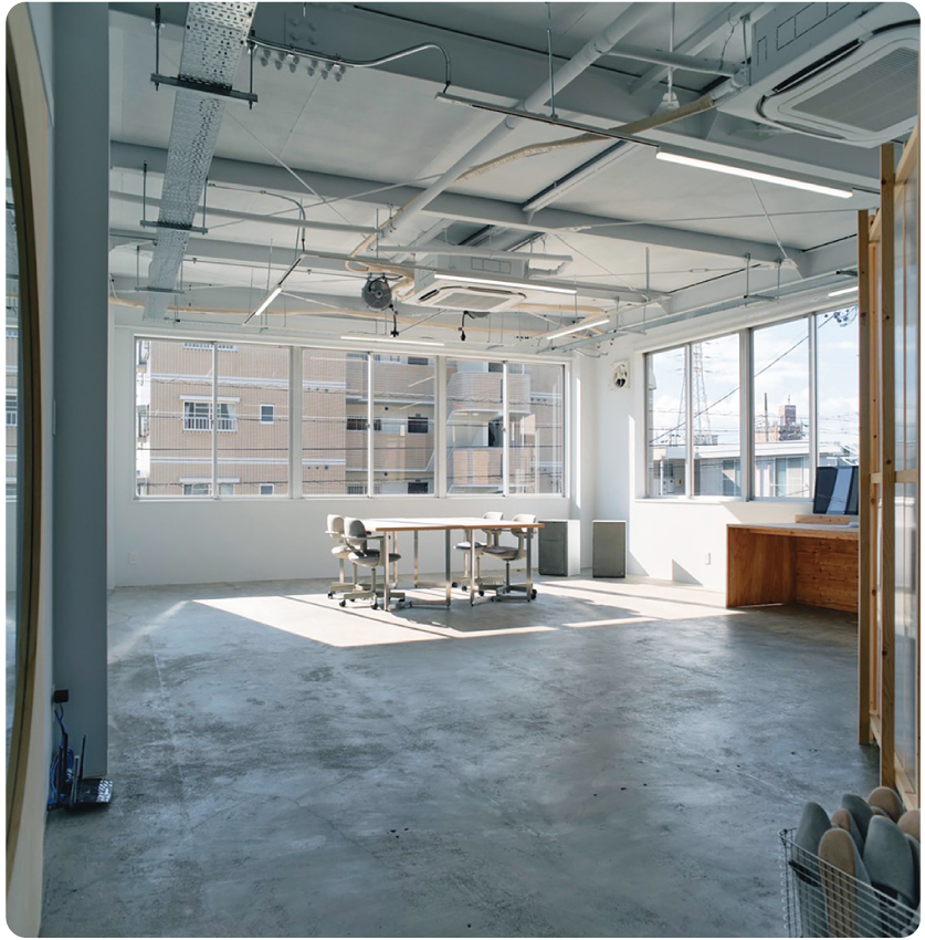 東海圏を拠点に企業のCM映像制作・写真撮影等を行うクリエイティブチーム「.new(ドットニュー)」が開設したスタジオ兼オフィススペース。大きな窓から自然光が差し込むスタジオは写真や映像の撮影のほか、ヨガ・ピラティスなどのエクササイズレッスンにも利用できる。