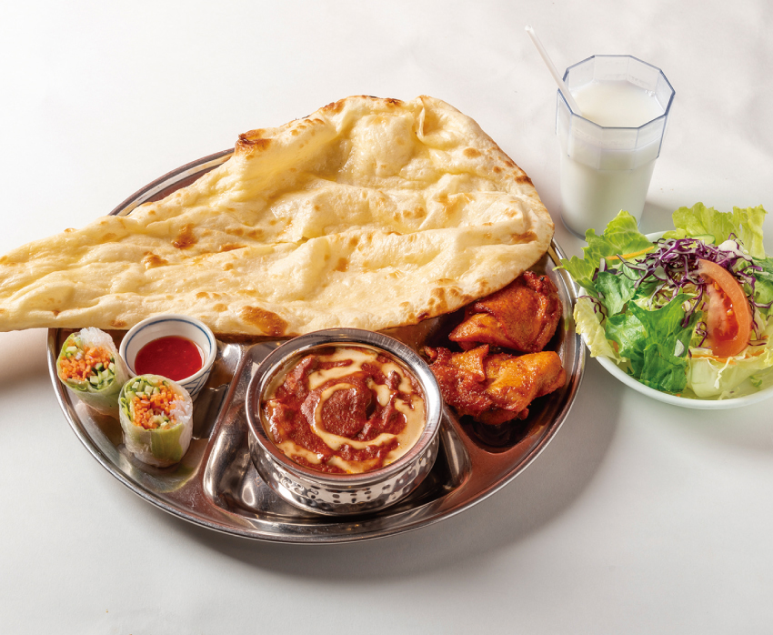 名古屋でも長年愛される人気店。半田店は居心地のよい落ち着いた空間で、カレーのおいしさも評判です。セット注文でマンゴーやラッシー、チャイが楽しめるドリンクバー付きなのも嬉しい。特別セットはディナー利用も可!
